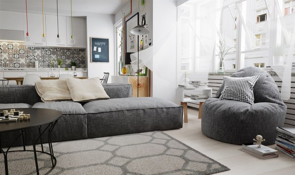 第三個全屋定制展示了斯堪的納維亞設(shè)計的一面,它更謹(jǐn)慎地使用木質(zhì)元素。甚至地板也更輕、更柔和,顏色主題展現(xiàn)出大膽而隨和的灰度主題,并在精心挑選的地方通過彩色口音增強(qiáng)。