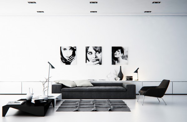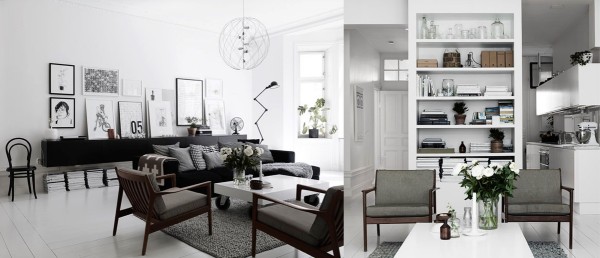 黑色、白色、灰色和天然木材為這個起居室?guī)砹艘环N精致的空氣,可以直接從另一個時代中走出來。