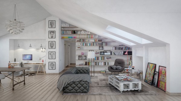 如果你沒有華麗的深木地板,可以考慮用粉刷粉刷它們以獲得藝術(shù)閣樓效果。