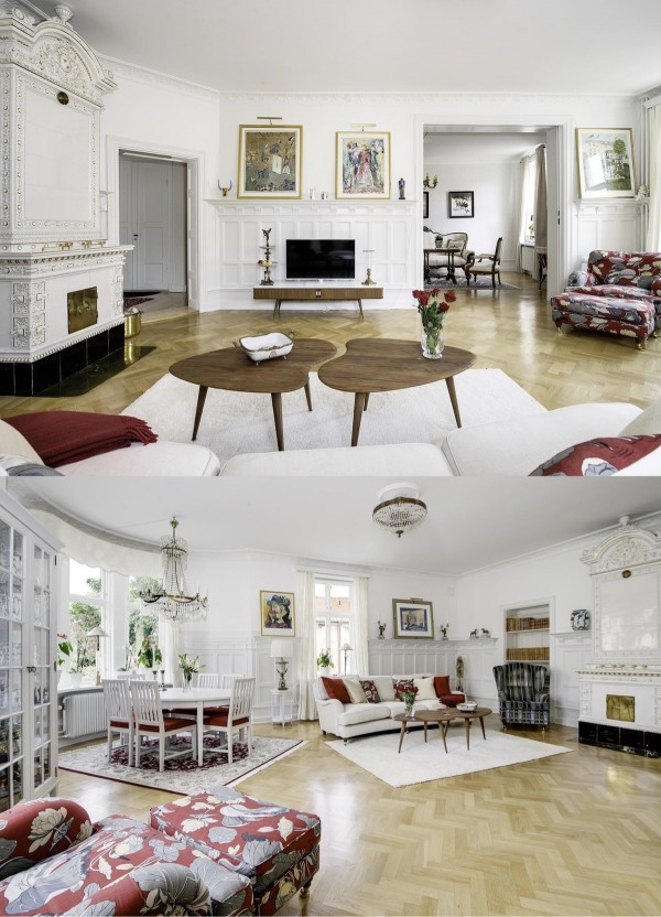 不匹配的家具和復古地毯并不是嚴格的斯堪的納維亞風格,但空間仍然非常舒適。