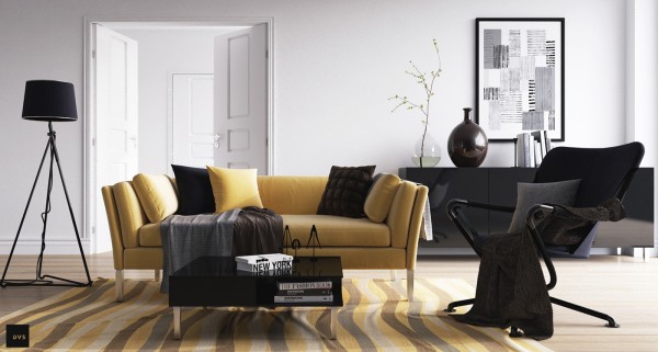 這款夢幻般的芥末色沙發(fā)是黑色、白色和黃色類別的后一款。