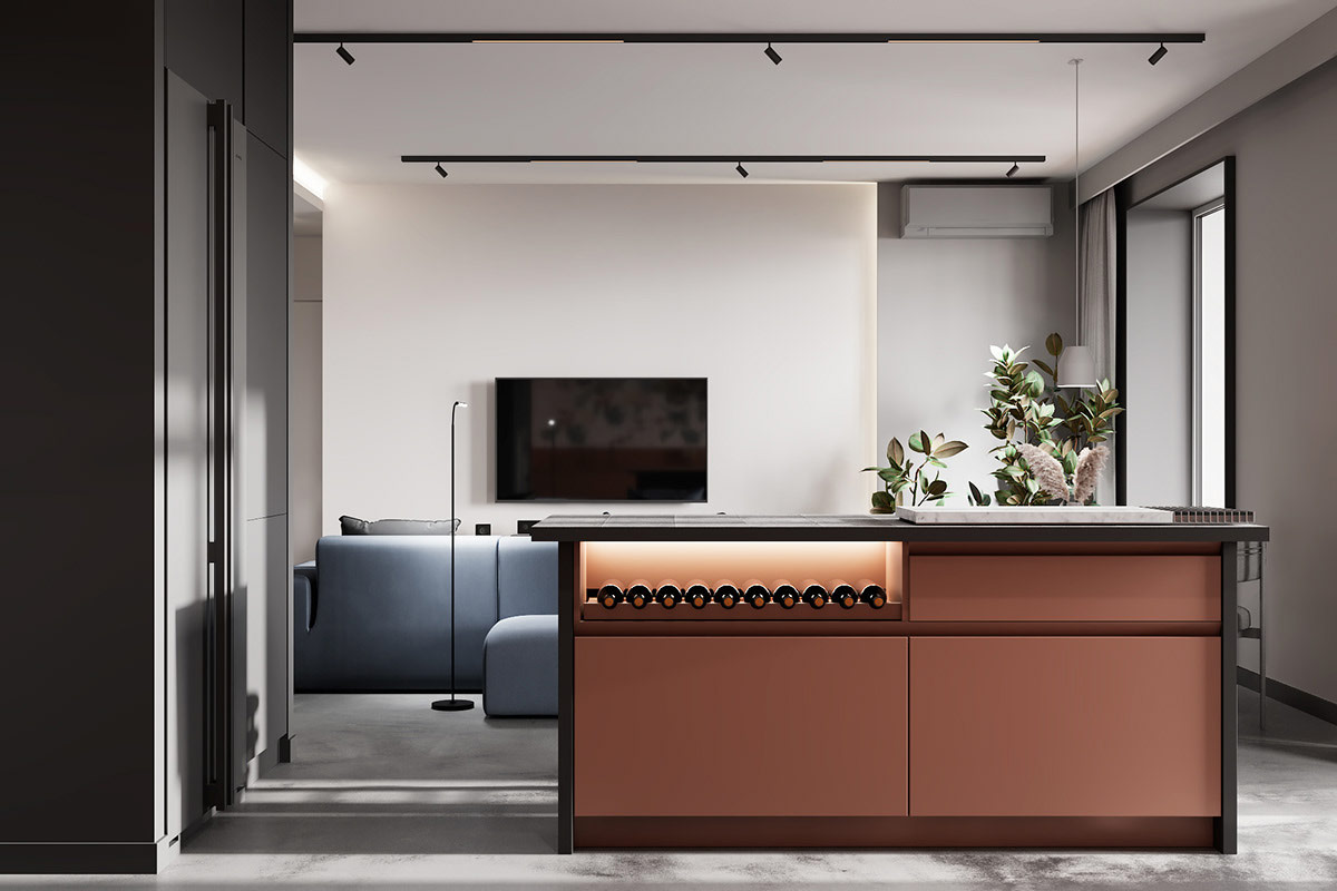 葡萄酒儲(chǔ)藏室隱藏在中央廚房島內(nèi)。