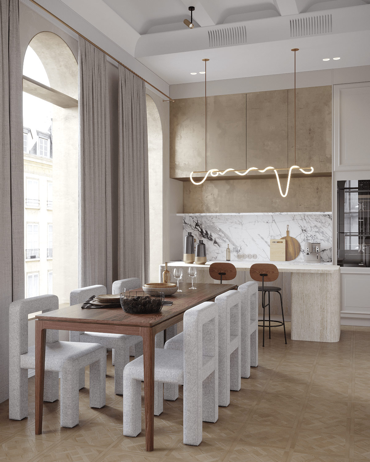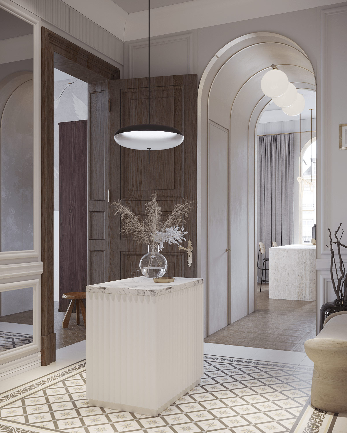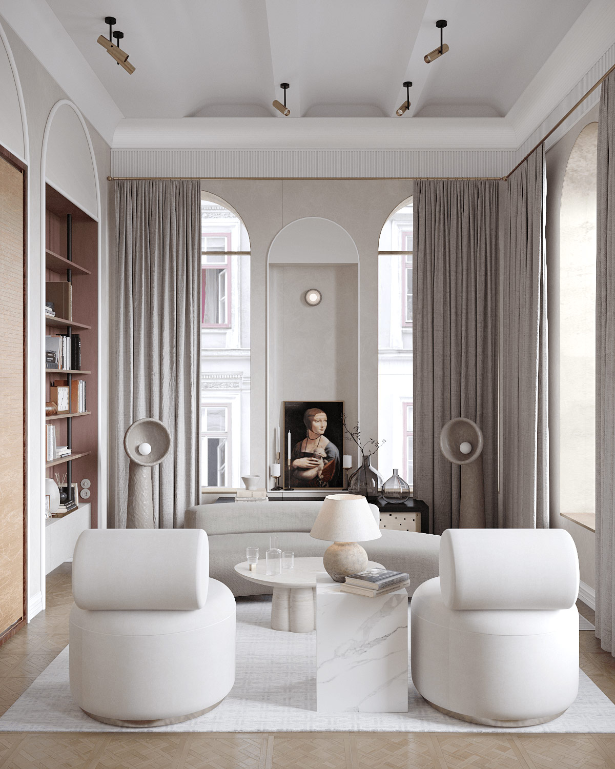 在一系列經(jīng)典的壁板和裝飾性木墻中,我們?cè)谶@兩個(gè)輝煌的新古典主義風(fēng)格家居內(nèi)飾中找到了現(xiàn)代家具和意想不到的調(diào)色板的平衡。經(jīng)典藝術(shù)表達(dá)了敏銳的品味和一定的社會(huì)地位,而當(dāng)代的影響則證明了前瞻性思維和對(duì)動(dòng)態(tài)趨勢(shì)的認(rèn)識(shí)。我們的第一個(gè)以藝術(shù)為中心的新古典主義家居設(shè)計(jì)是對(duì)時(shí)尚拱門的優(yōu)雅描繪,它毫不費(fèi)力地彌合了經(jīng)典設(shè)計(jì)影響和新想法之間的差距。我們的第二個(gè)特色家居內(nèi)飾從粉紅色和綠色光譜中釋放出令人瞠目結(jié)舌的明亮色彩沖突,并在傳統(tǒng)墻壁內(nèi)融合了時(shí)尚的羅紋紋理和賽道圖案。