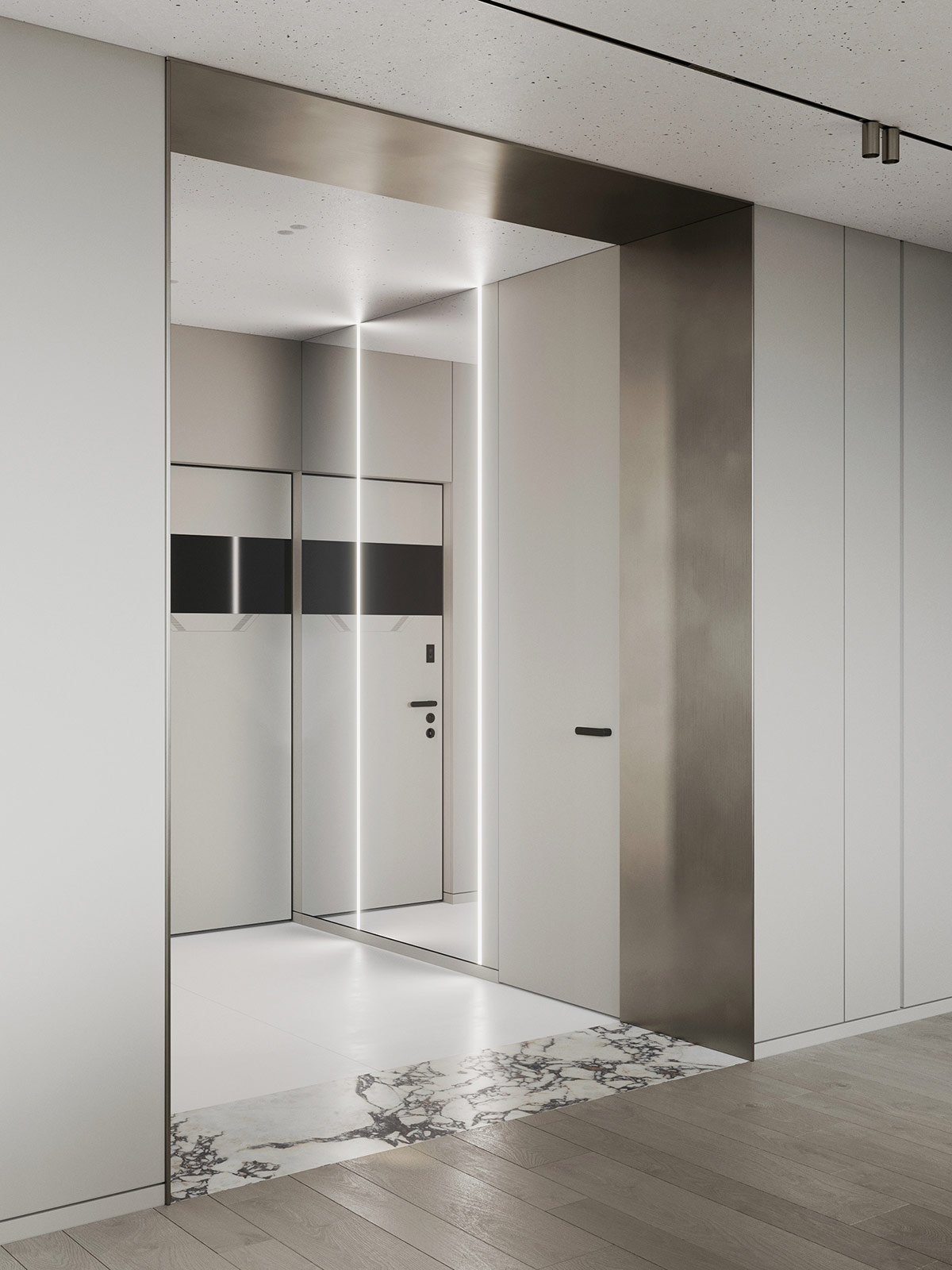 全長(zhǎng)背光鏡子照亮了豪華的入口。