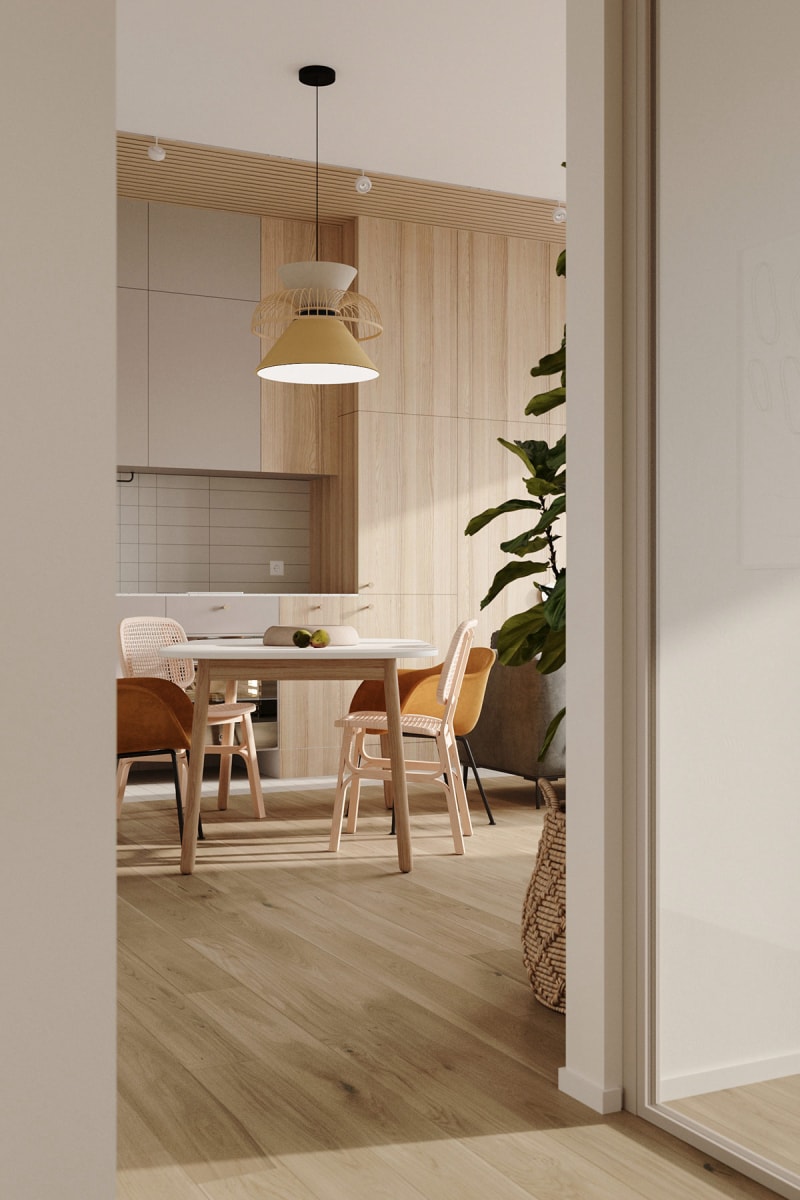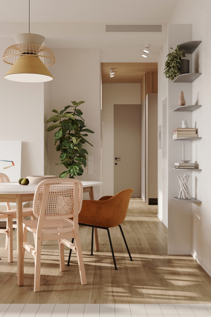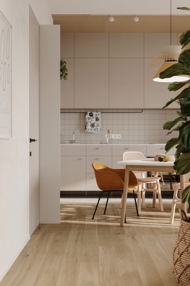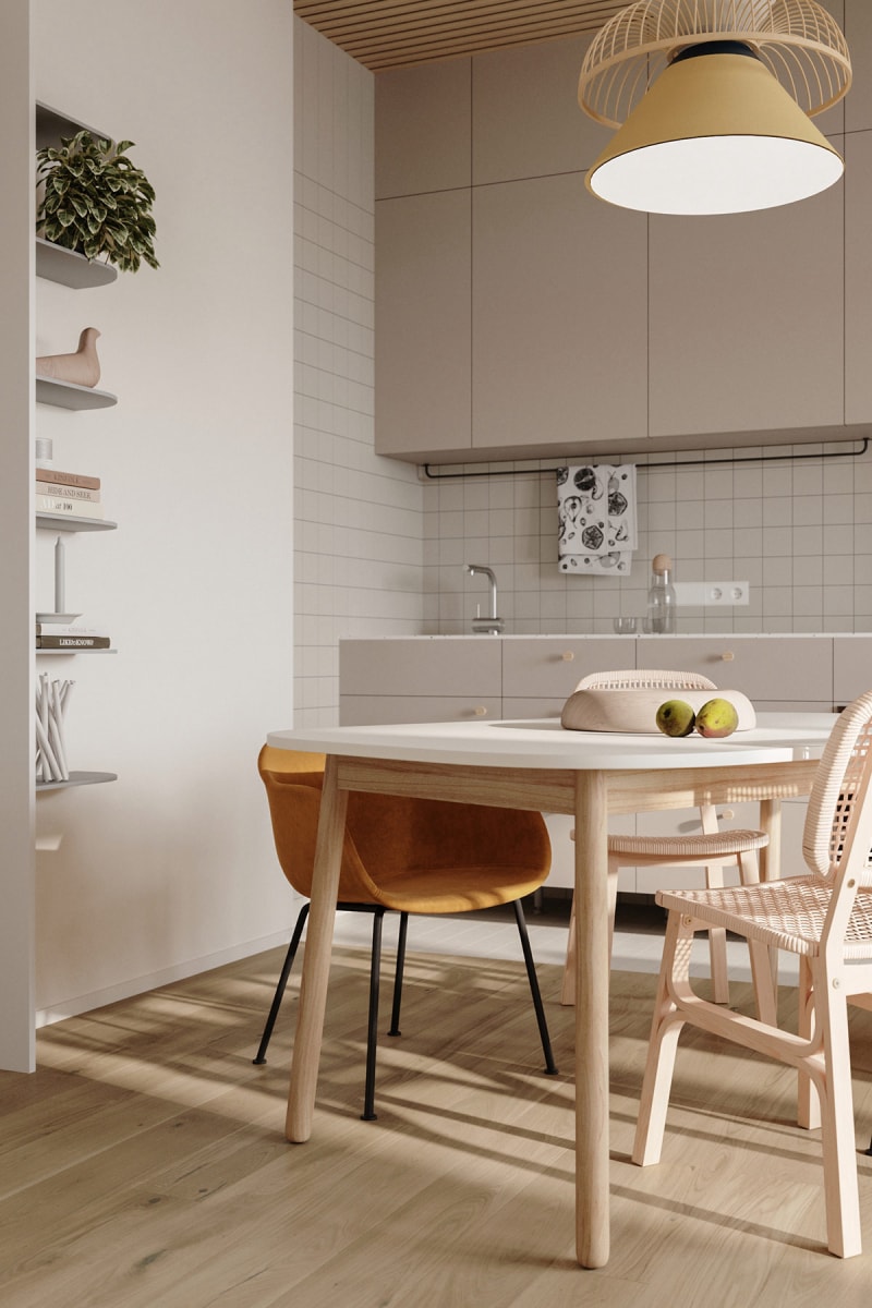 這座住宅位于俄羅斯莫斯科,由Natalia Rybakova進(jìn)行全屋定制設(shè)計(jì)。柔和的色調(diào)提升了這個(gè)71.2 平方米家庭住宅的內(nèi)飾,這個(gè)現(xiàn)代房子通過(guò)柔和的綠色、黃色和藍(lán)色注入,以及主要的淺木色調(diào)元素來(lái)溫暖。雖然尺寸緊湊,但這座房子包含了幸福家庭生活的所有實(shí)用必需品。開(kāi)放式概念起居空間將家庭成員聚集在一起,并結(jié)合了用餐、烹飪和休息的安排。周邊家具被削減,以確保環(huán)境不會(huì)感到過(guò)度擁擠或復(fù)雜。臥室安靜,配備齊全的浴室干凈整潔。文章結(jié)尾有公寓平面圖。