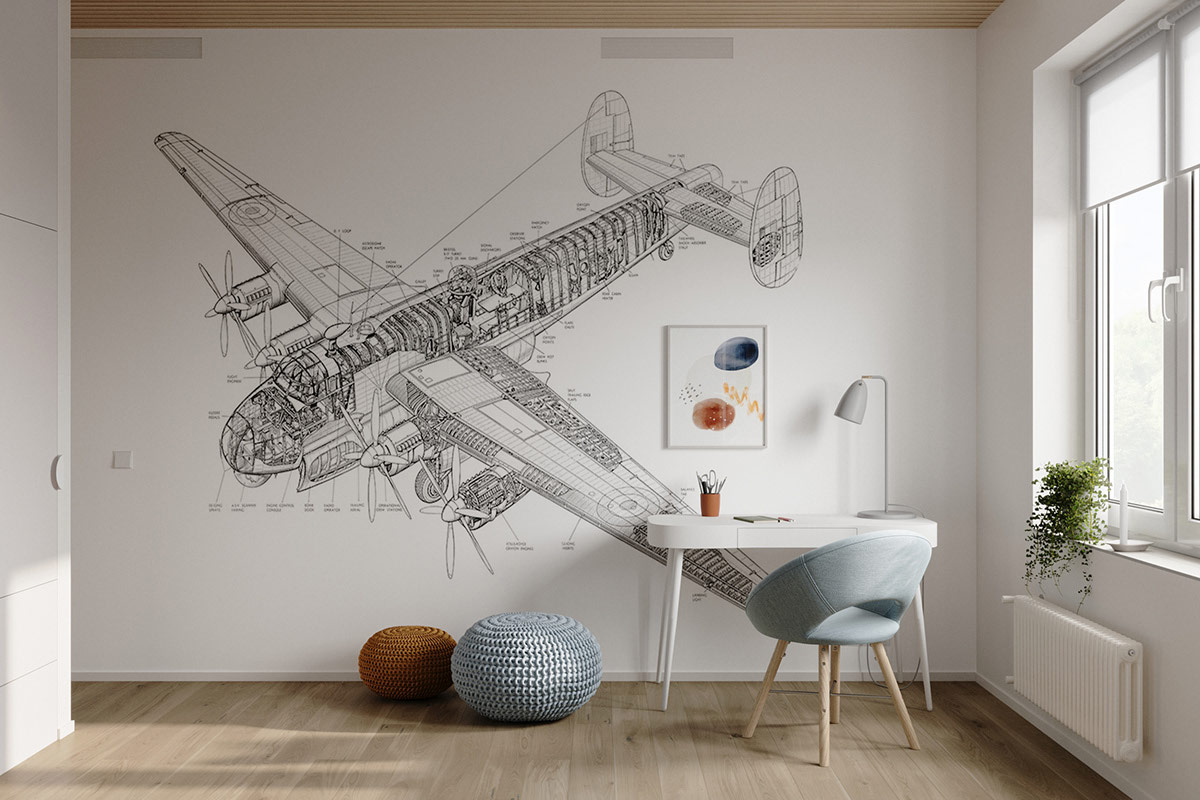 一個(gè)孩子的學(xué)習(xí)區(qū)奠定了房屋風(fēng)格,用獨(dú)特的兒童書(shū)桌,實(shí)用的臺(tái)燈和當(dāng)代藍(lán)色桌椅。一張Avro Shackleton 的畫(huà)作在桌子后面形成了一面壯觀且具有教育意義的焦點(diǎn)墻。