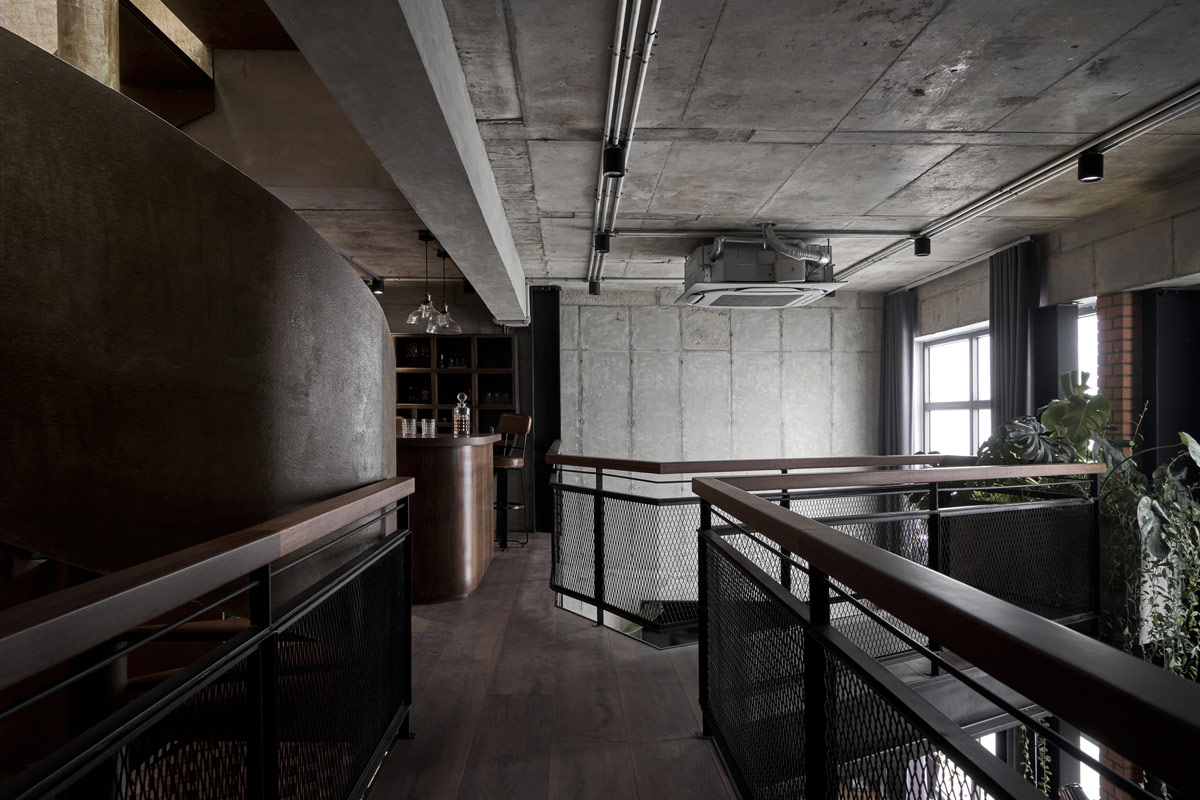 原始混凝土和紅磚在餐廳墻壁周圍形成對比。