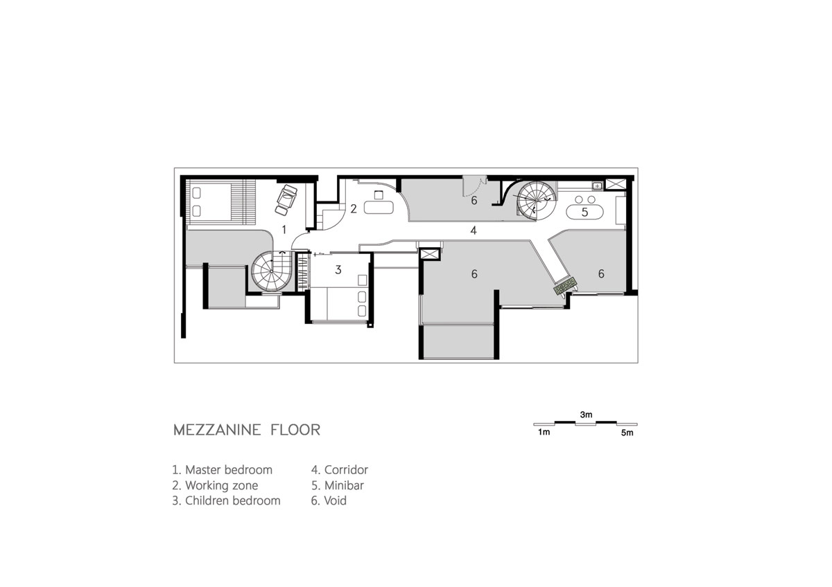 夾層臥室利用了工業(yè)閣樓中巨大的天花板高度,并將房主提升到視野中。