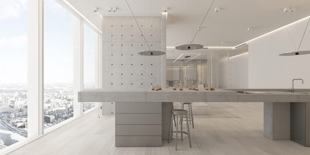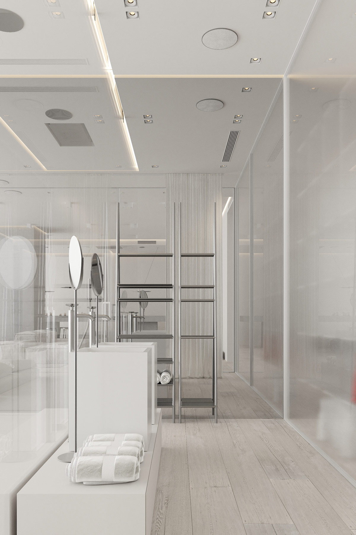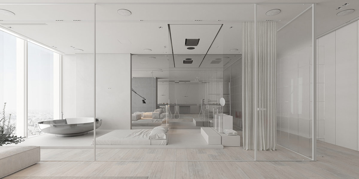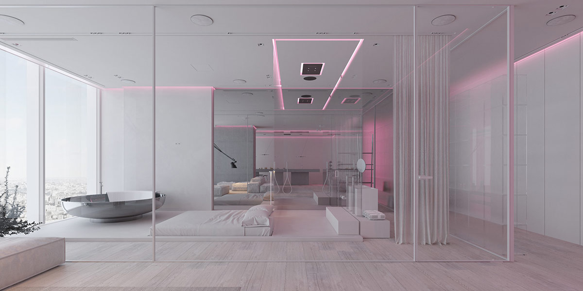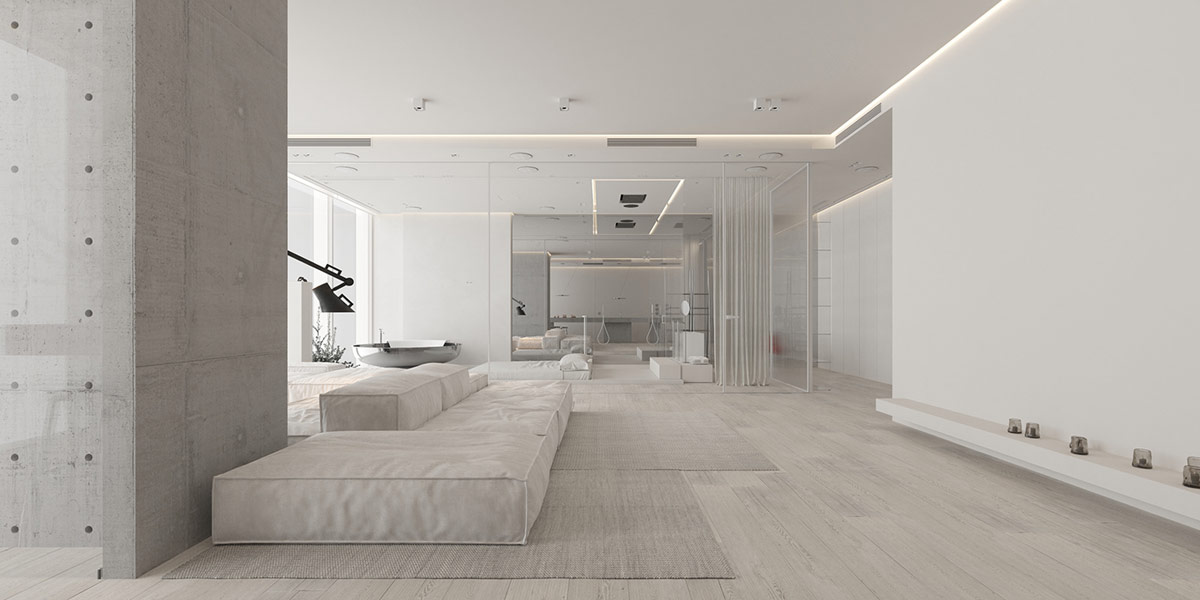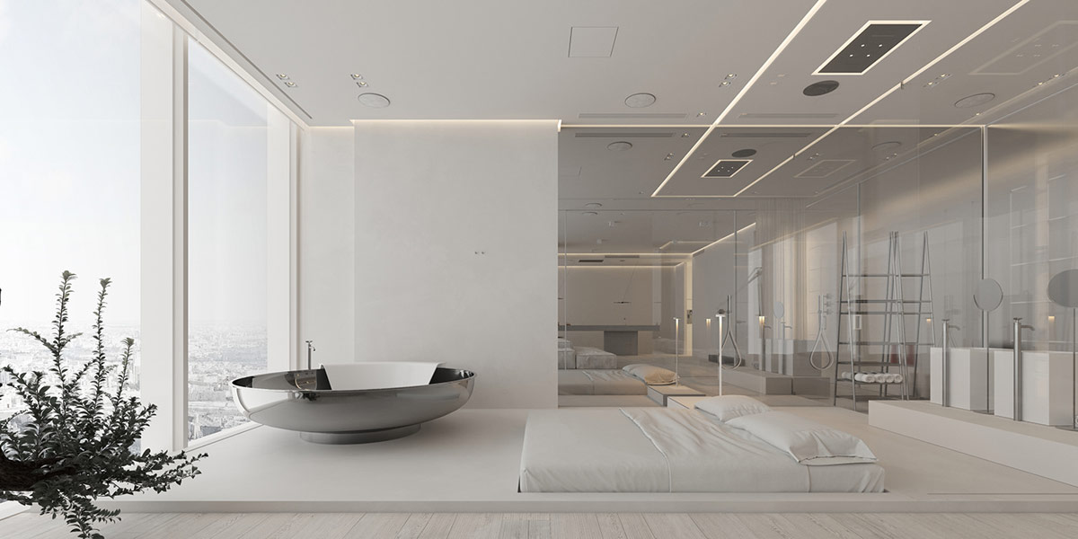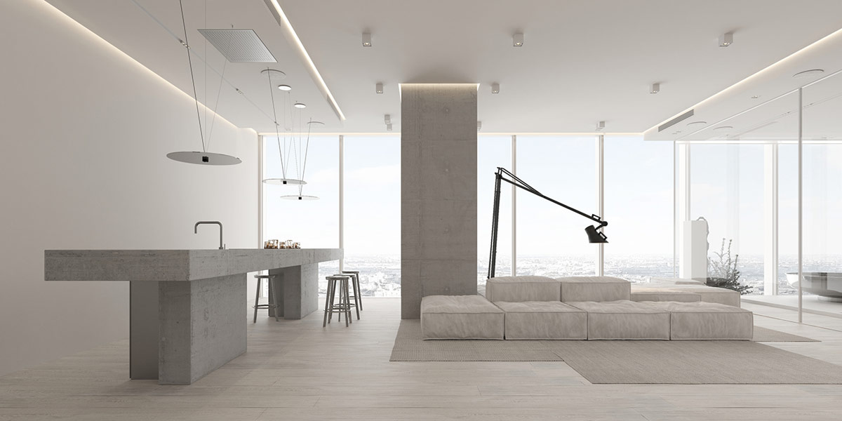 這種簡約而奢華的家居設計在寬敞的開放空間中體現出高端的風格。由伊戈爾·西羅托夫( Igor Sirotov ) 設計的城市閣樓以超大的現代家具為特色,在簡約的布局中展現出重要的個性。五彩繽紛的氛圍燈瞬間改變了純白色的裝飾,不會使空間變得復雜或混亂。原始混凝土元素為現代閣樓內部增添了工業(yè)元素,以抵消顏色和線條的清潔度。臥室及其開放式套間浴室位于奢華的玻璃包裹體中,讓城市全景不間斷地流動。只有衛(wèi)生間和管家的儲藏室隱藏在視野之外,從而營造出一種壯觀的多功能生活體驗。