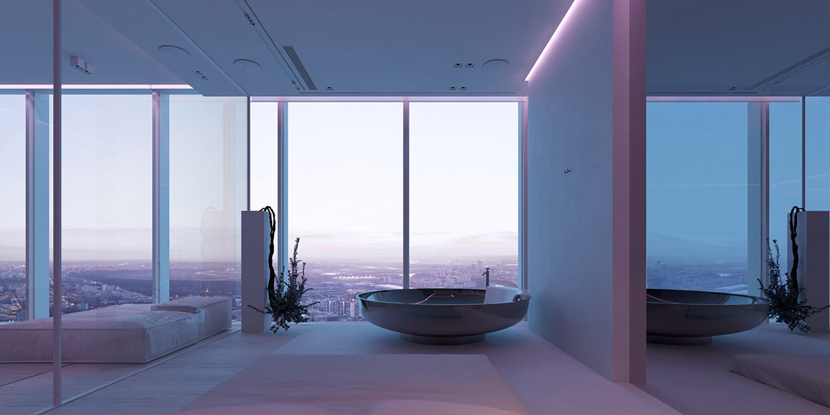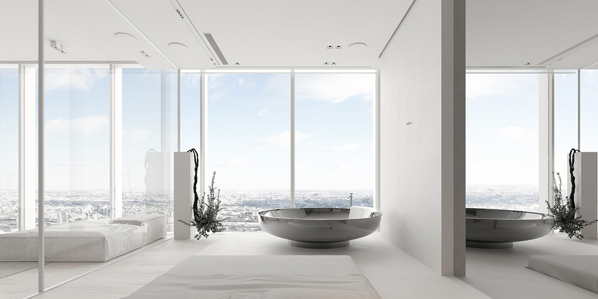 獨特的圓形浴缸可以充分利用壯觀的城市景觀。