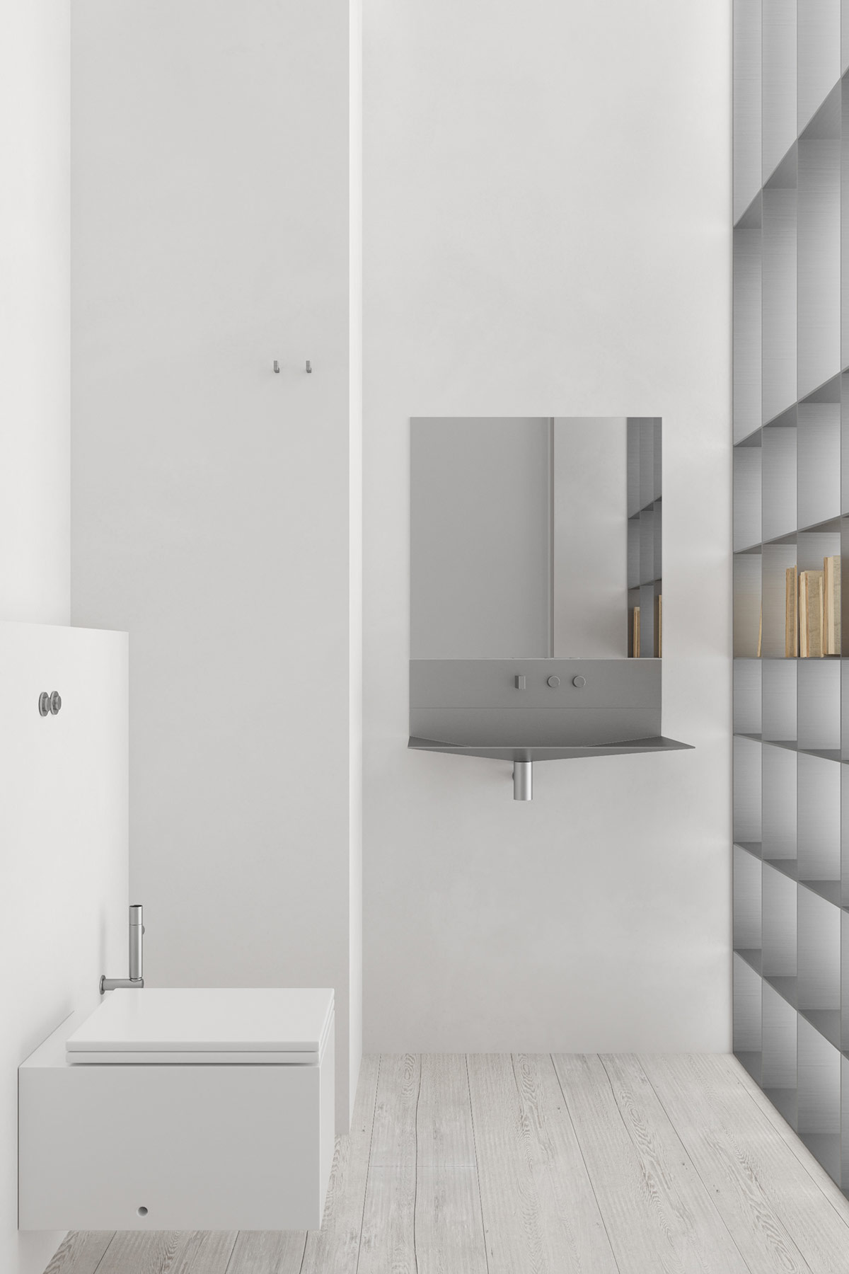 高大的梳妝鏡優(yōu)雅地出現在深長方體盆之間。