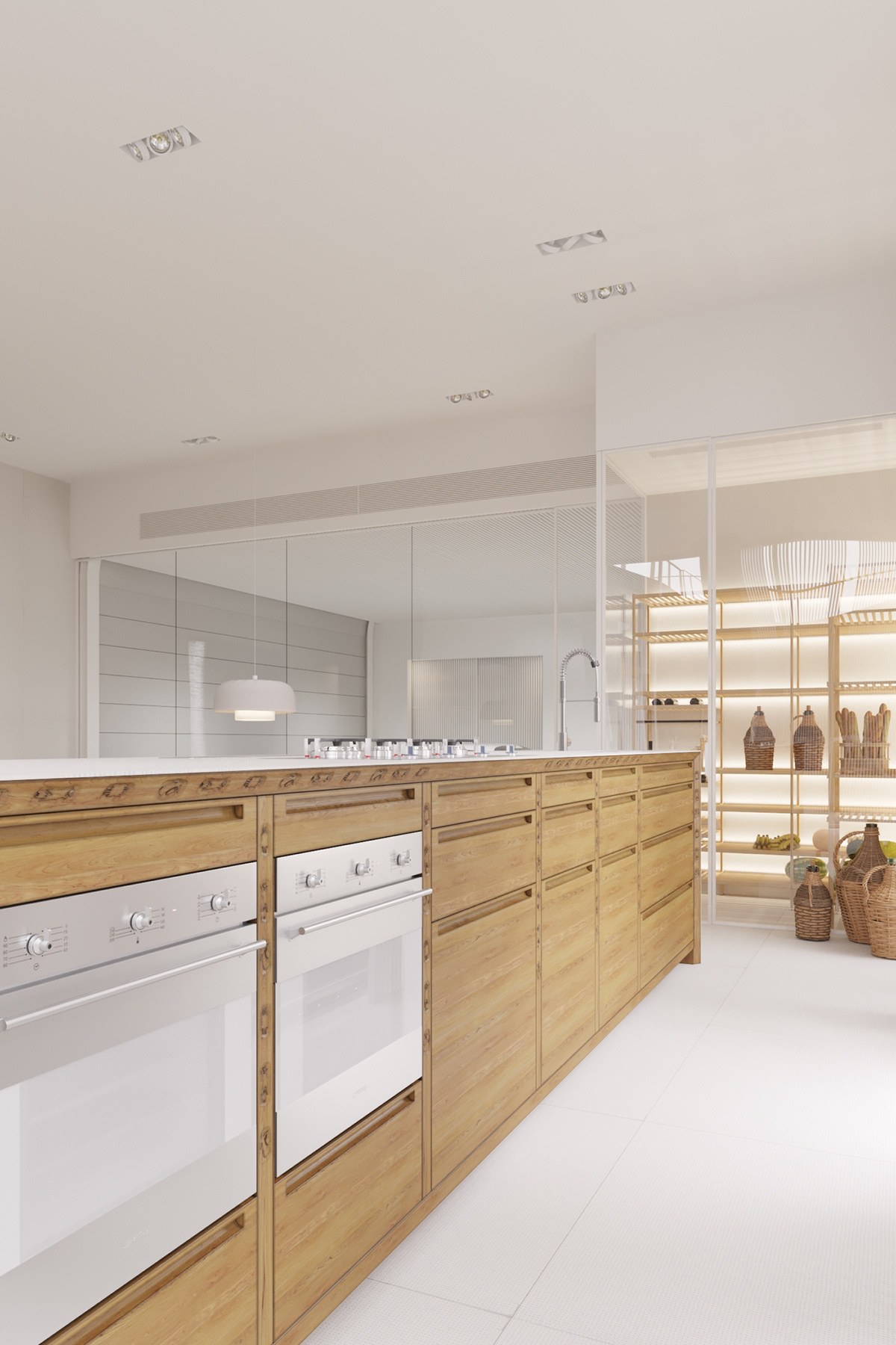 木制櫥柜與食品儲藏室相匹配,這些有機元素共同柔化了家居的美感,使其更加溫馨。