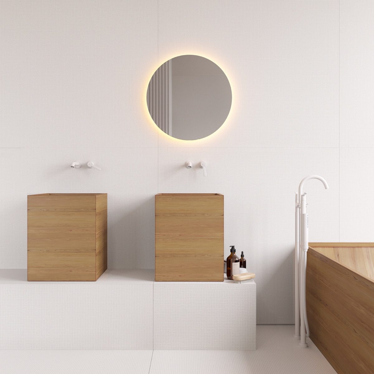 帶有 LED 背光的圓形鏡子看起來有點像太陽,為房間增添了深度。你見過木質(zhì)浴缸嗎?它不僅看起來令人放松,而且還為房間帶來了生機,因為它與豪華的男女設(shè)施相結(jié)合。