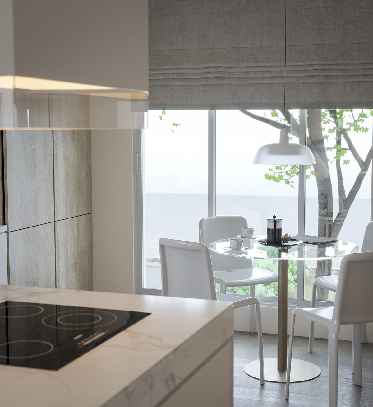 廚房占據(jù)較高的位置,可以俯瞰周圍的生活空間。